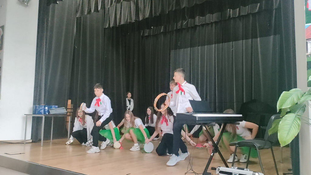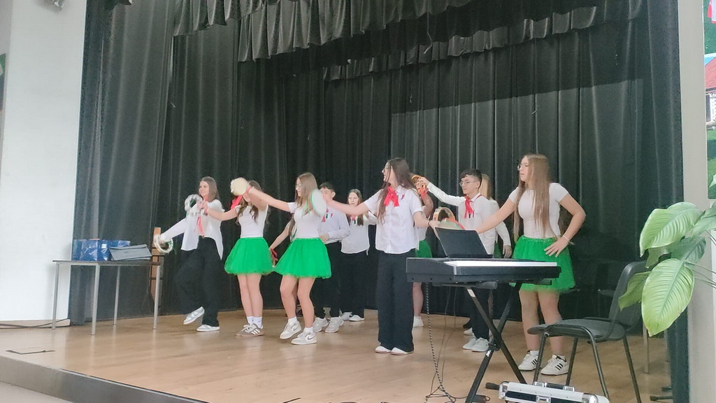 Na zakończenie wszyscy uczniowie z klas 7-8 z terenu gminy Podegrodzie zatańczyli wspólnie w głównej sali GOK taniec belgijski, który zjednoczył młodych Europejczyków w radosnym rytmie!
