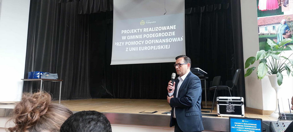 Uroczystość rozpoczęła się od wspólnego odśpiewania hymnu Unii Europejskiej, po którym głos zabrali przedstawiciele organizatorów i zaproszeni goście - m.in. przedstawiciel Stowarzyszenia "Nowosądeckie Serducho" oraz zastępca Wójta Gminy Podegrodzie, pan Artur Boruta, którzy podkreślili znaczenie europejskiej współpracy, otwartości i aktywności młodych ludzi.