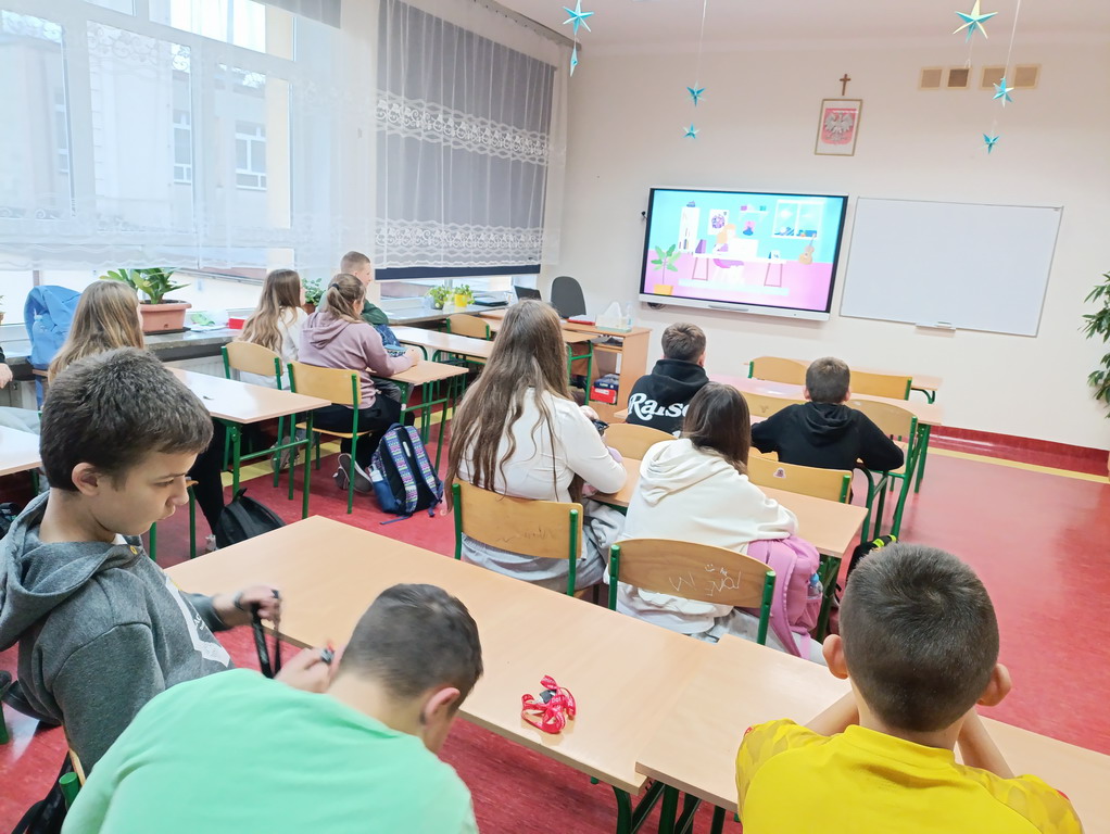 - 1 godzina zajęć dotyczących bezpieczeństwa w sieci – podczas których uczniowie poznali zasady odpowiedzialnego korzystania z Internetu, jak mądrze korzystać z urządzeń elektronicznych oraz jak budować dobre nawyki cyfrowe.