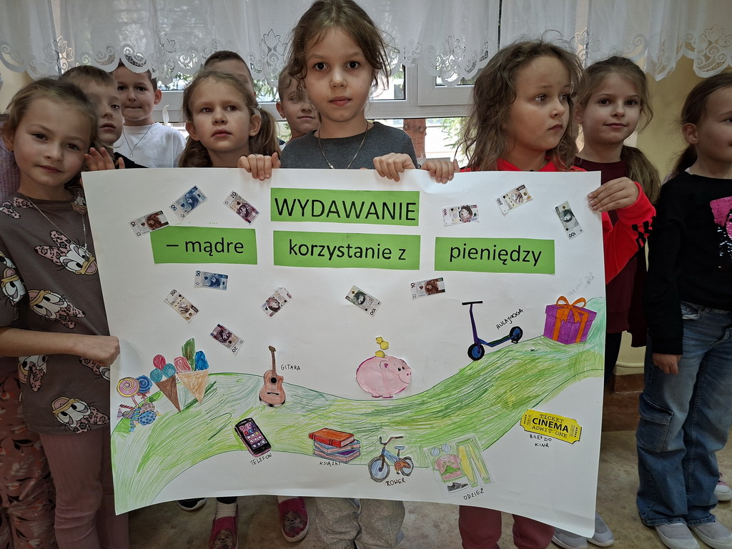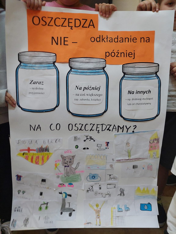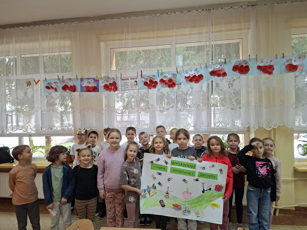 Dzieci poznały geneza powstania pieniędzy, ich funkcje oraz sposoby bezpiecznego przechowywania. Uczyły się rozróżniać podstawowe pojęcia ekonomiczne, takie jak: zarabianie, oszczędzanie, wydawanie. Zapoznały się również z polską walutą oraz walutami używanymi w krajach Unii Europejskiej. Jednym z zadań było wykonanie plakatów dotyczących oszczędzania, które pozwoliły uczniom twórczo podsumować zdobytą wiedzę.