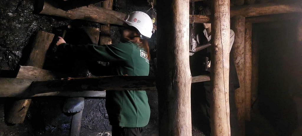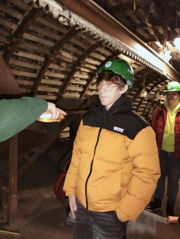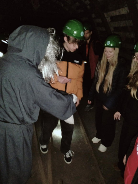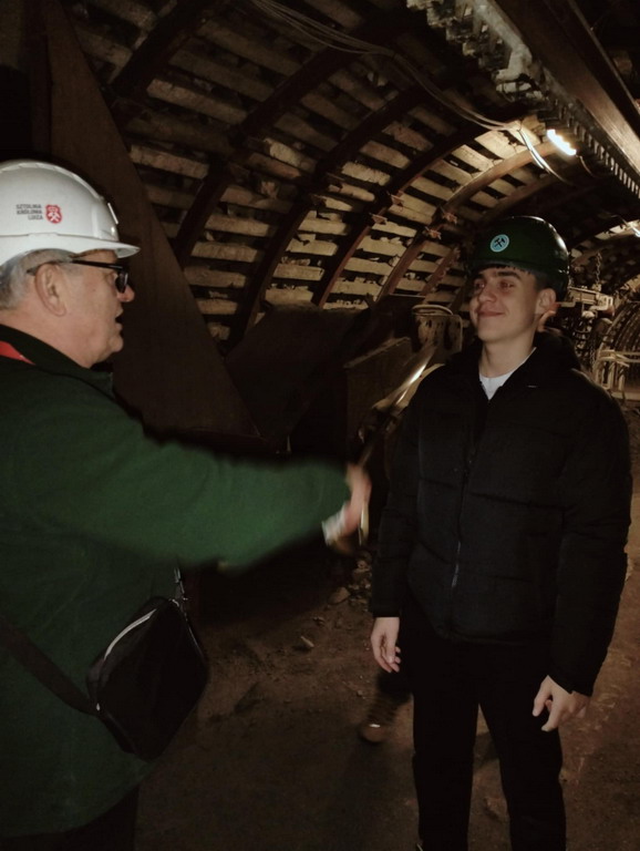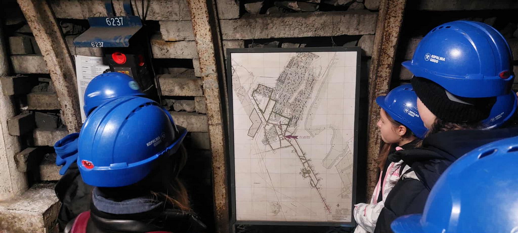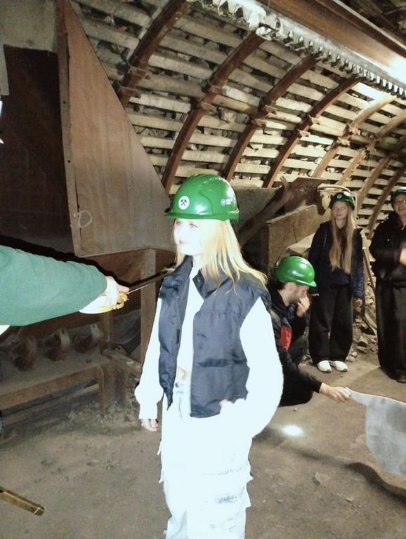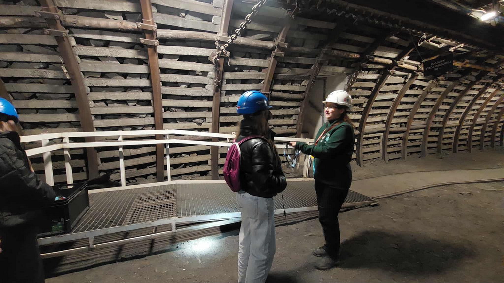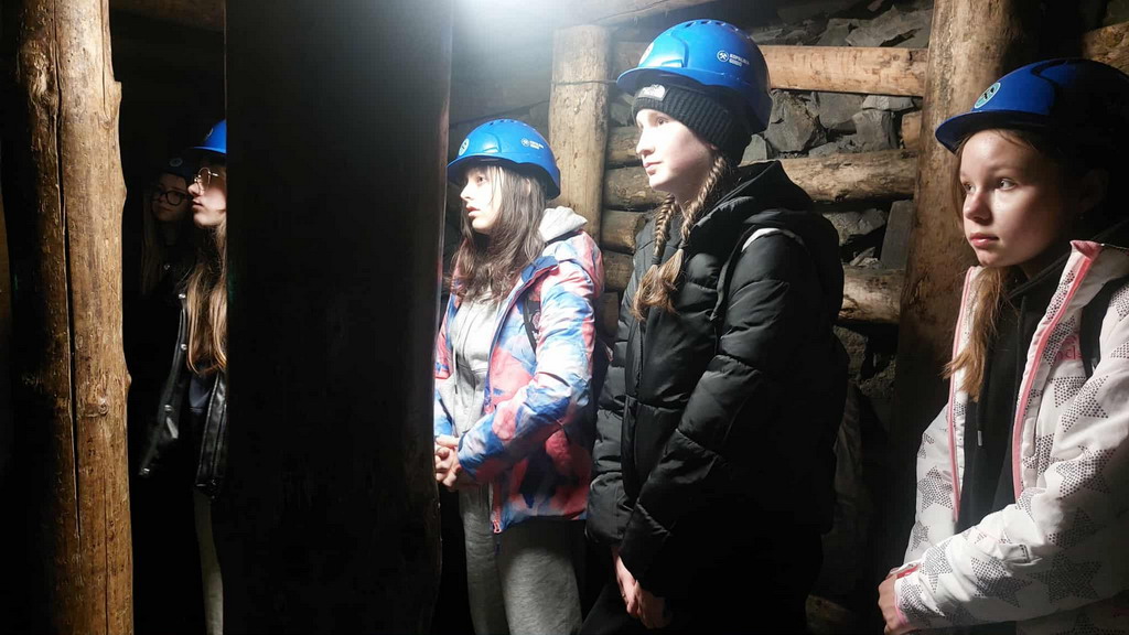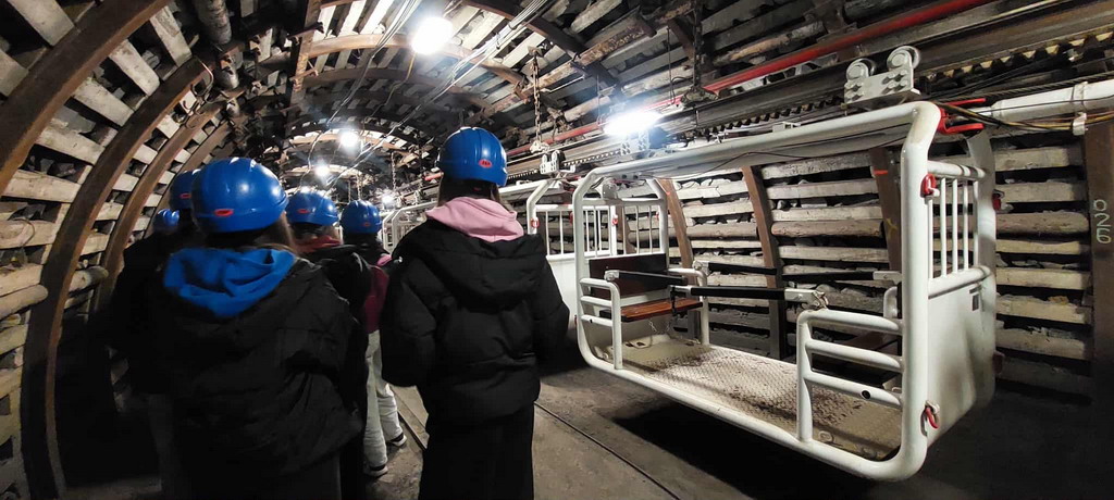 Kolejnym punktem programu była wizyta w kopalni Guido, której zwiedzanie rozpoczęło się pełnym wrażen zjazdem w głąb ziemi na poziom 320 metrów. Przemierzając podziemne korytarze uczniowie mieli okazję odkrywać fascynujący świat górnictwa - od historii i trudów pracy górników po nowoczesne elementy prezentujące rozwój wydobycia na przestrzeni lat.