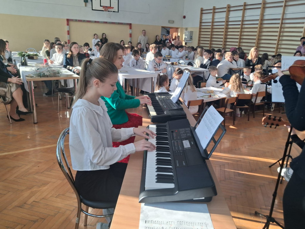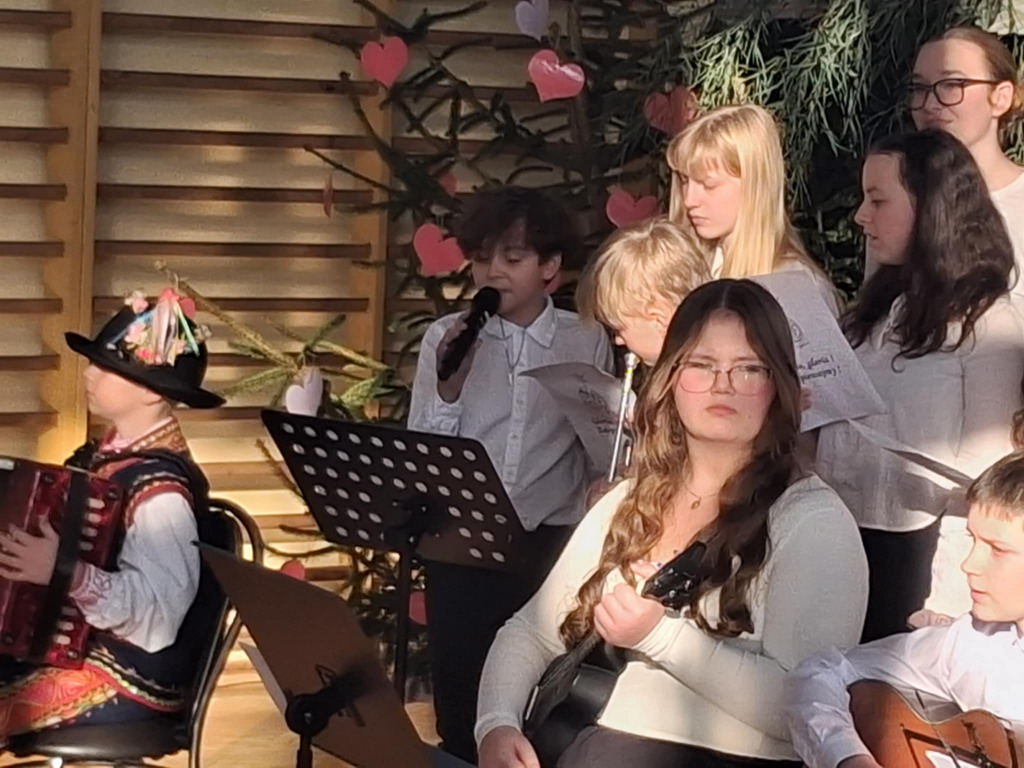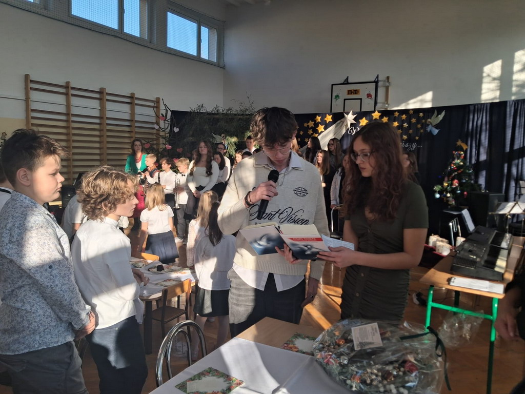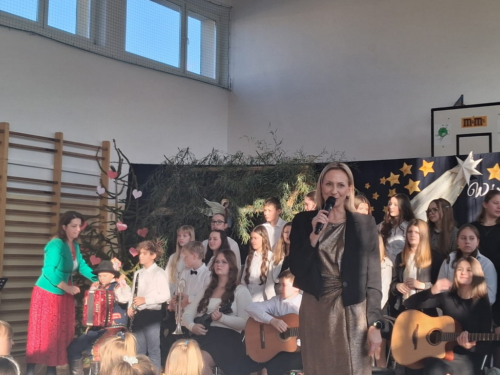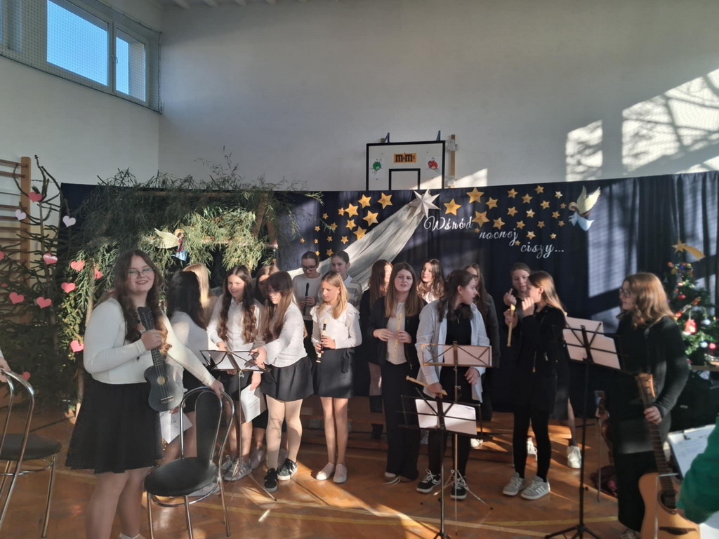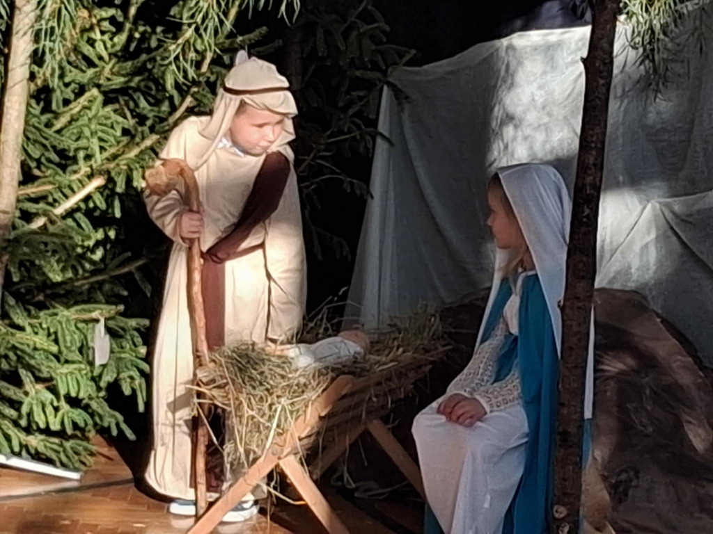 W dniu 19.12.2025r. w naszej szkole odbyła się uroczysta wigilia szkolna, pełna wzruszeń, radości i świątecznego ciepła. Dzieci z oddziału przedszkolnego oraz uczniowie klasy I przygotowali piękne przedstawienie bożonarodzeniowe, które wprowadziło wszystkich w magiczny, świąteczny nastrój. Po akademii wysłuchaliśmy koncertu kolęd w wykonaniu uczniów naszej szkoły, a następnie nadszedł wyjątkowy moment dzielenia się opłatkiem i składania życzeń.