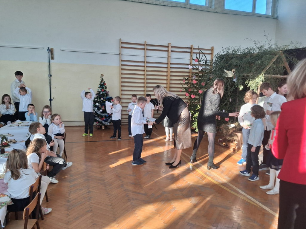 Na zakończenie zostały wręczone nagrody w konkursie na najpiękniejszy wieniec bożonarodzeniowy. Wszystkie prace zachwyciły komisję, dlatego - z uwagi na wysoki poziom i ogromne zaangażowanie - każda z nich została wyróżniona. Był to dzień pełen ciepła, uśmiechów i prawdziwie świątecznej atmosfery. Składamy serdeczne podziękowania dla rodziców zaangażowanych w przygotowanie wigilijnego poczęstunku.