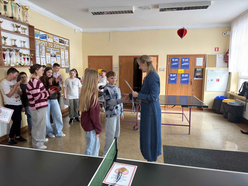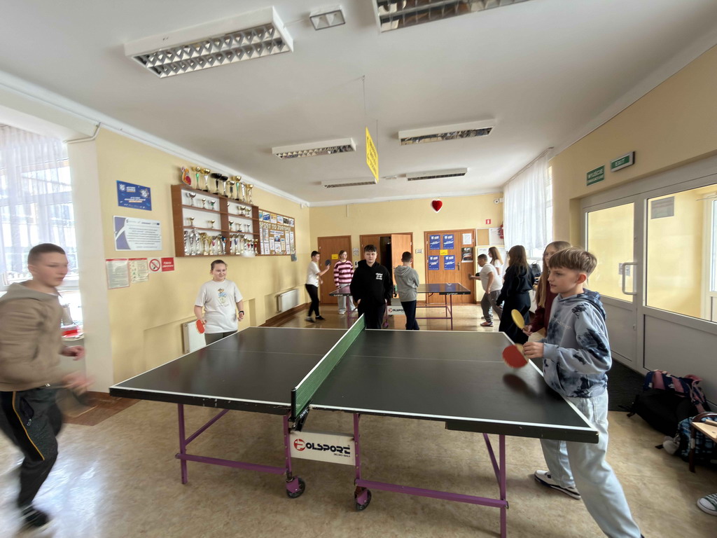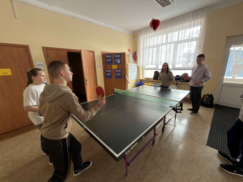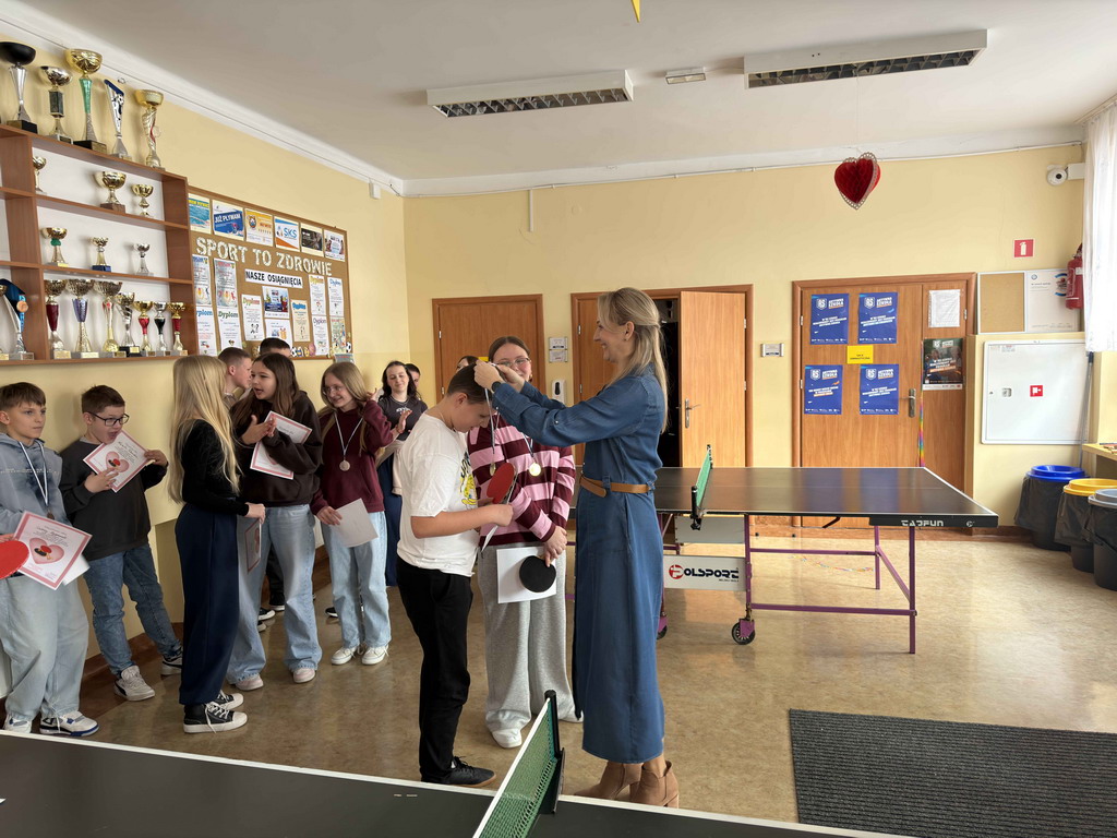 We wtorek 17 lutego w naszej szkole odbył się Walentynkowy Turniej Par w Tenisa Stołowego dla uczniów klas 4–6. Zawody rozegrano w formule debla, a każdą drużynę tworzyła para mieszana – chłopak i dziewczyna. Do rywalizacji stanęło wiele zespołów, które wykazały się dużym zaangażowaniem, sportową postawą oraz umiejętnością współpracy.